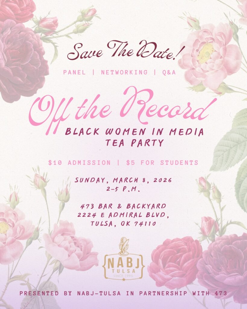 Join NABJ–Tulsa for Off the Record: Black Women in Media, an intimate and empowering gathering at 473 Bar & Backyard in Tulsa.